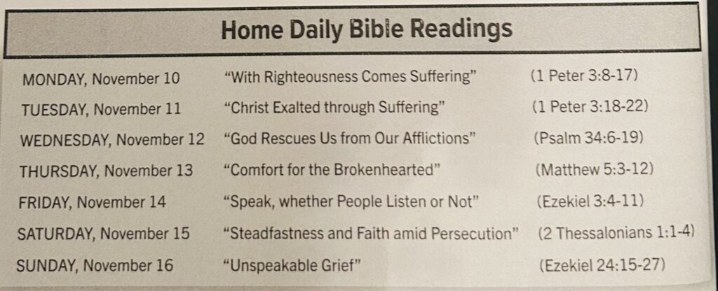 Home Daily Bible Readings Post author:brenda Post published:November 9, 2025 Post category:General You Might Also Like Sunday School With Fannie October 13, 2021 Sunday School With Toraine April 26, 2021 Vacation Bible School May 23, 2025