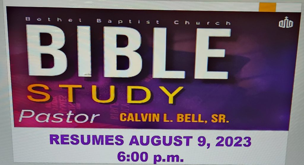 Wednesday Bible Study Post author:brenda Post published:August 1, 2023 Post category:General You Might Also Like Home Daily Bible Readings July 17, 2022 Drive Thru Surprise Birthday Parade For Our Pastor Bell July 6, 2020 Thank you February 17, 2021